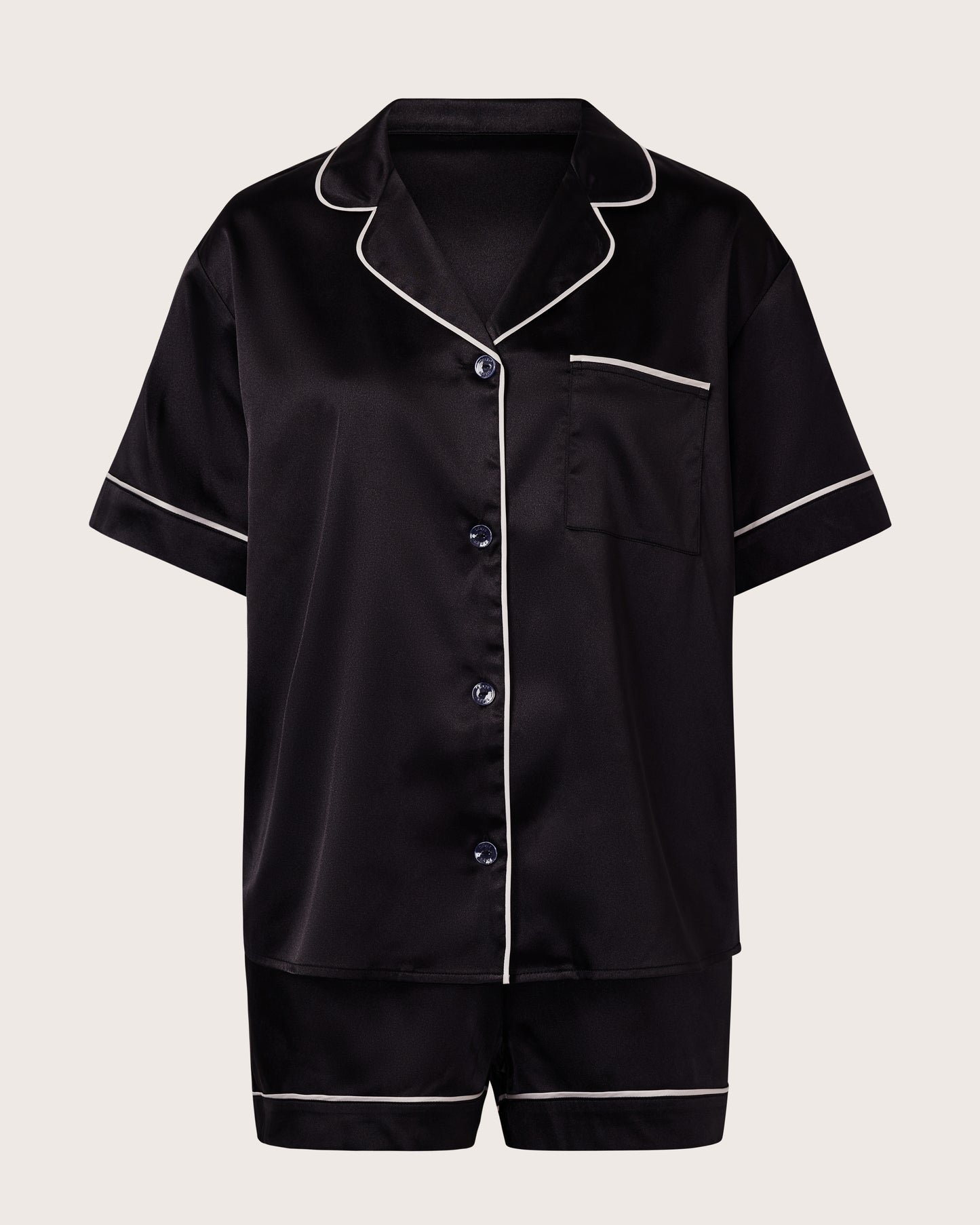 Deliciously sumptuous satin, designed for lounging and sultry sleep. A reimagined classic with a relaxed short and shaped shirt. Romanced with contrast piping and presented in a stunning gift box, she’s the indulgent gift for every season.