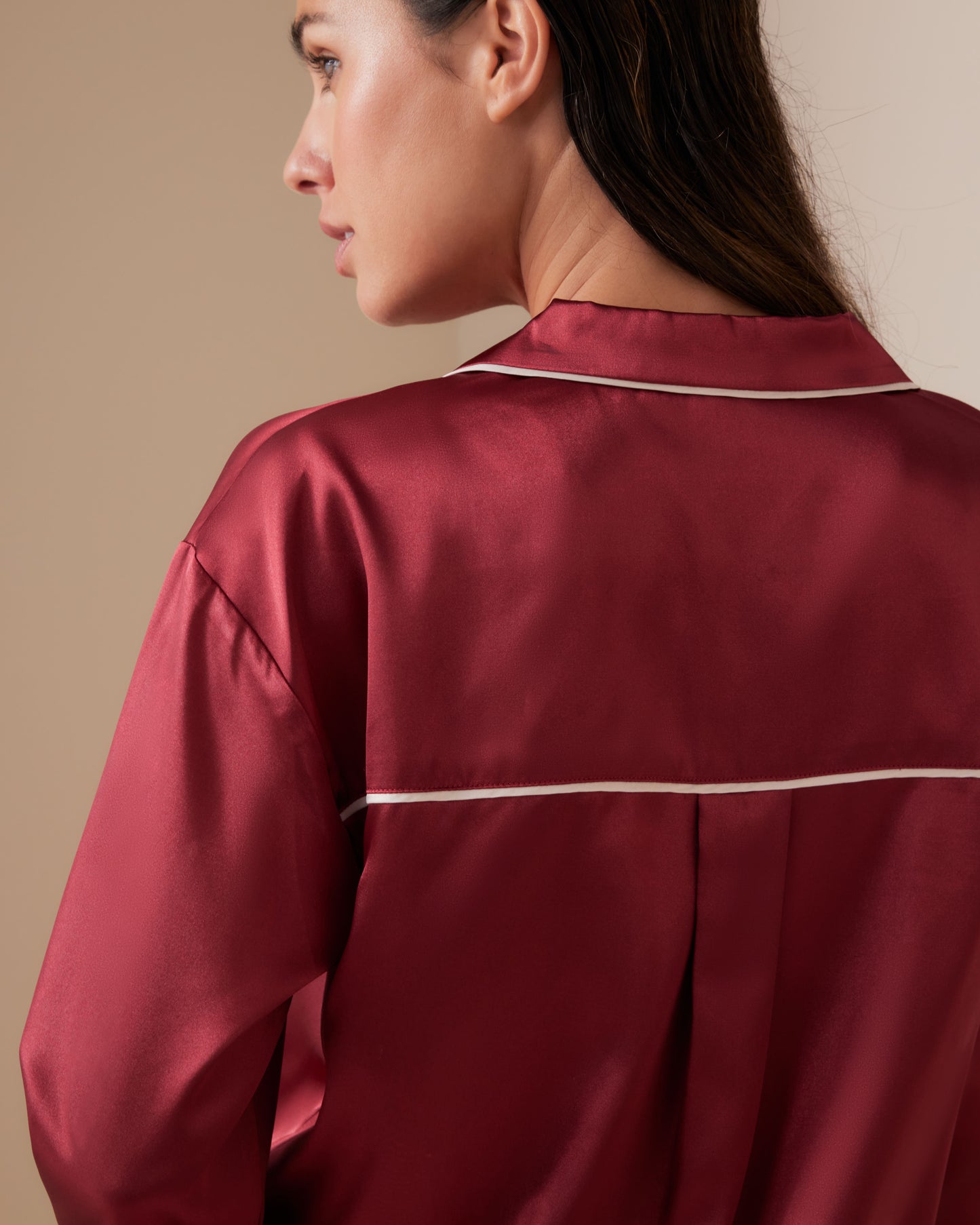 Deliciously sumptuous satin adorns this reimagined classic, with an elegant wide-leg pant and shaped shirt. Romanced with contrast piping and presented in a stunning gift box, she’s the gift of indulgence.