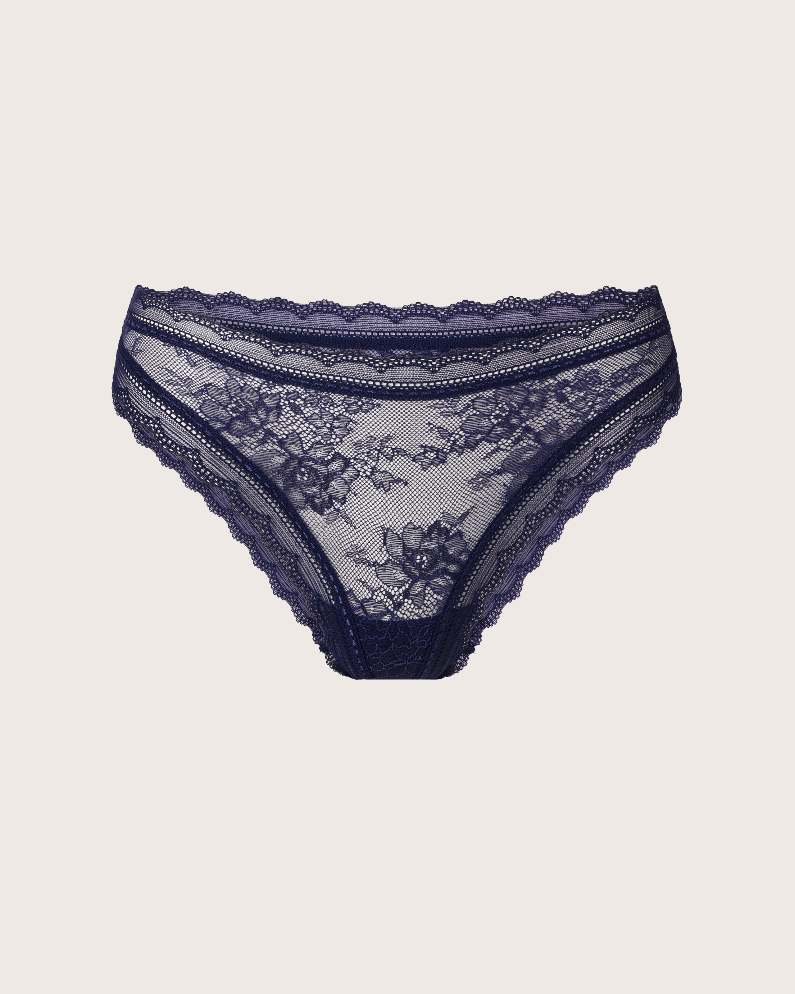 Floral stretch-lace, with elastic-free edges for a seamless silhouette. A pinch of peek-a-boo and a classic, bikini shape, she's all-day comfort with a breathable, bamboo blend liner.