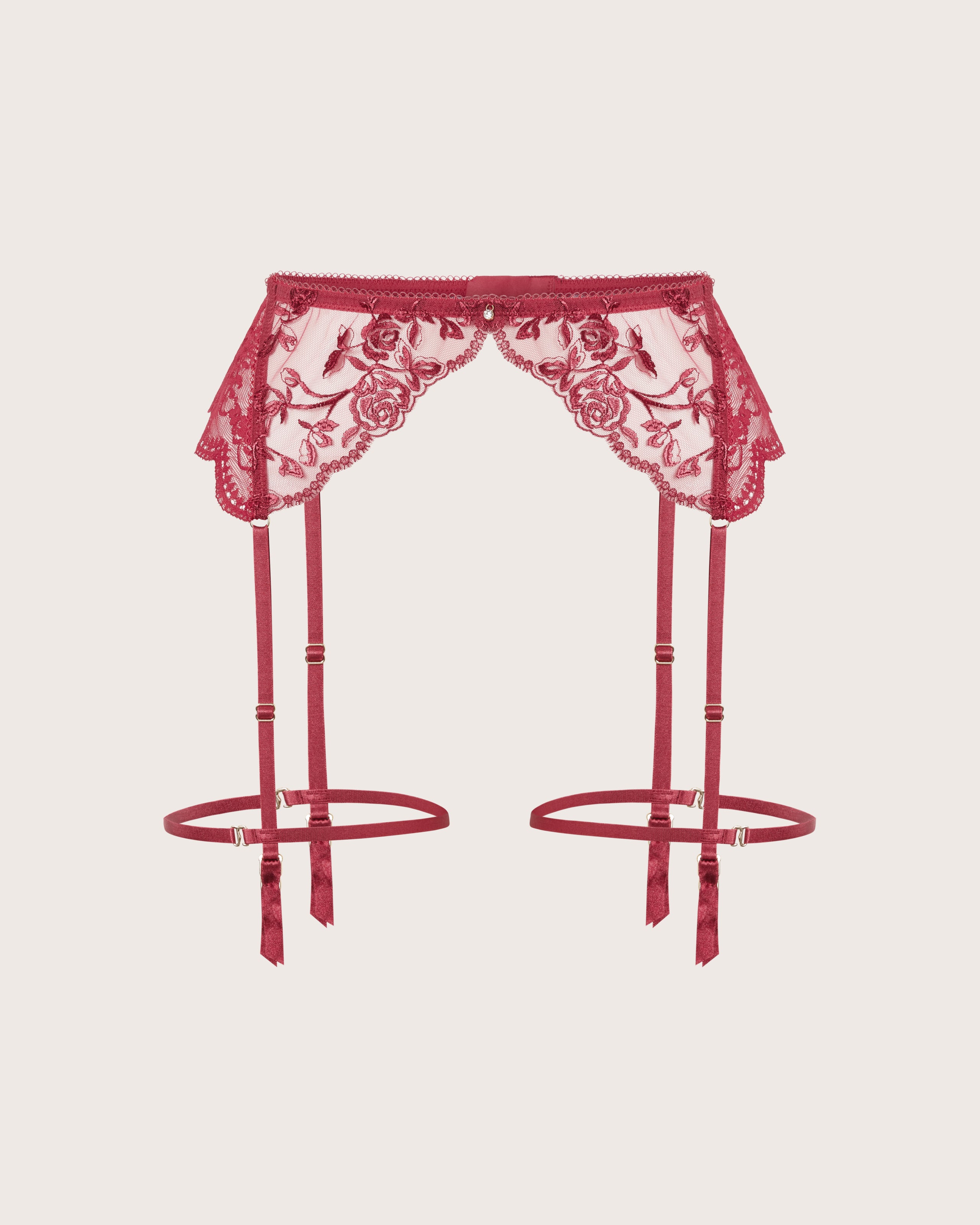 Feminine rose embroidery, luxe lace and a statement leg garter, for showstopping seduction.