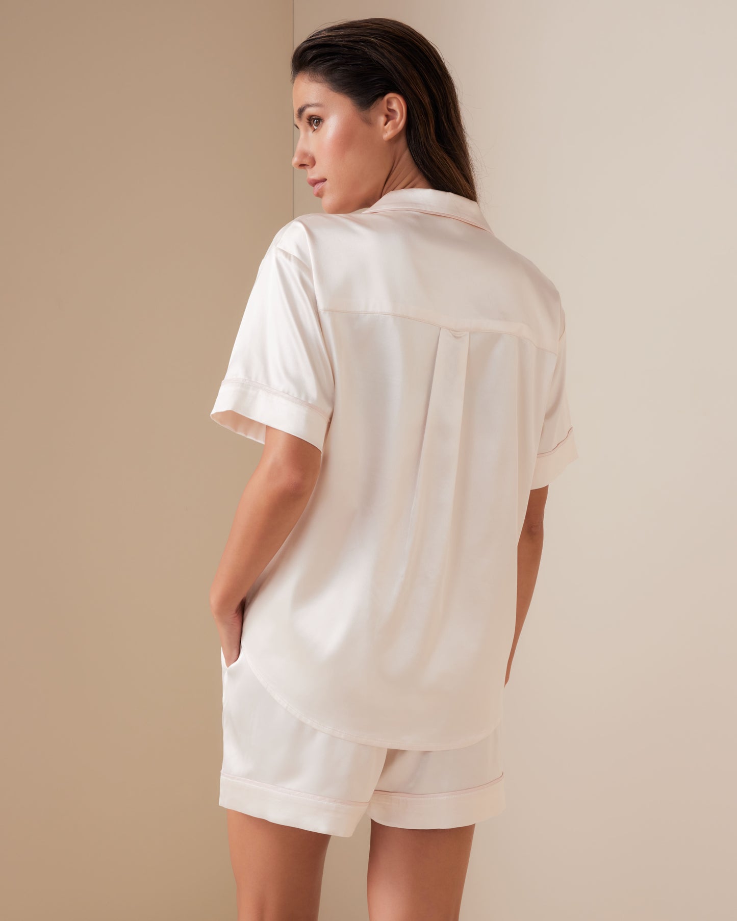 Deliciously sumptuous satin, designed for lounging and sultry sleep. A reimagined classic with a relaxed short and shaped shirt. Romanced with contrast piping and presented in a stunning gift box, she’s the indulgent gift for every season.